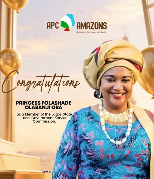 The APC Amazons have congratulated Folashade Olabanji-Oba on her appointment as a Member of the Lagos State Local Government Service Commission.